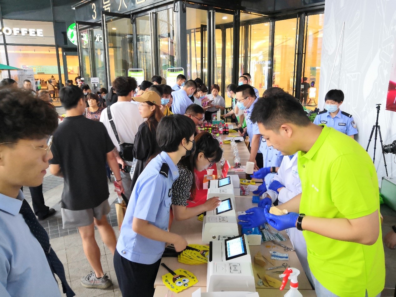 青年紅色科技筑夢(mèng) 禁毒科普服務(wù)群眾——杭州錢塘站 2021-06-28 6月19日下午,在杭州市錢塘新區(qū)龍湖金沙天街商場(chǎng)門前,一場(chǎng)題為“珍愛生命、遠(yuǎn)離毒品——青年紅色筑夢(mèng)之旅”的禁毒科普公益行活動(dòng)熱烈展開。本次活動(dòng)由浙江警察學(xué)院刑事科學(xué)技術(shù)系、浙江省毒品防控技術(shù)研究重點(diǎn)實(shí)驗(yàn)室、錢塘新區(qū)公安分局金沙湖派出所、錢塘新區(qū)公安分局禁毒大隊(duì)、寧波華儀寧創(chuàng)智能科技有限公司等單位聯(lián)合主辦,包括拒絕毒品簽名、禁毒常識(shí)宣講、禁毒知識(shí)有獎(jiǎng)問(wèn)答、禁毒檢測(cè)儀器體驗(yàn)等多個(gè)豐富多彩的內(nèi)容,吸引了近千名杭州市民駐足參與。 查看詳情