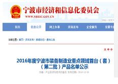 公司產(chǎn)品通過裝備制造業(yè)重點(diǎn)領(lǐng)域首臺(tái)(套)認(rèn)證 2017-03-06 根據(jù)《寧波市人民政府關(guān)于加快發(fā)展智能裝備產(chǎn)業(yè)的實(shí)施意見》(甬政發(fā)〔2015〕68號(hào))和《寧波市經(jīng)信委關(guān)于印發(fā)寧波市裝備制造業(yè)重點(diǎn)領(lǐng)域首臺(tái)(套)產(chǎn)品認(rèn)定管理辦法的通知》(甬經(jīng)信技改〔2013〕218號(hào)) 查看詳情