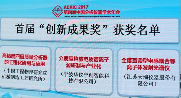 中國儀器儀表學會分析儀器分會于2017年首度設(shè)立“分析儀器創(chuàng)新獎”,設(shè)立宗旨是發(fā)現(xiàn)、鼓勵、宣傳分析儀器界在新原理、新方法、新技術(shù)及新應(yīng)用方面的創(chuàng)新成果,加速推動我國分析儀器技術(shù)的發(fā)展,要求技術(shù)具有原創(chuàng)性,成果具有獨創(chuàng)性,技術(shù)水平國際先進,國內(nèi)領(lǐng)先;經(jīng)實踐,可重復、可推廣;具有明顯的技術(shù)進步作用,技術(shù)經(jīng)濟綜合指標優(yōu)越的項目。由于是首次設(shè)獎評選,評選要求高,申報成果眾多,競爭相當激烈,最終獲獎實屬不易。首屆“分析儀器創(chuàng)新成果獎”包括:介質(zhì)阻擋放電質(zhì)譜離子源研制與產(chǎn)業(yè)化(寧波華儀寧創(chuàng)智能科技有限公司)、高精度四級桿質(zhì)量分析器的工程化研制與應(yīng)用(中國工程物理研究院機械制造工藝研究所)、全譜直讀型電感耦合等離子體發(fā)射光譜儀(江蘇天瑞儀器股份有限公司)。