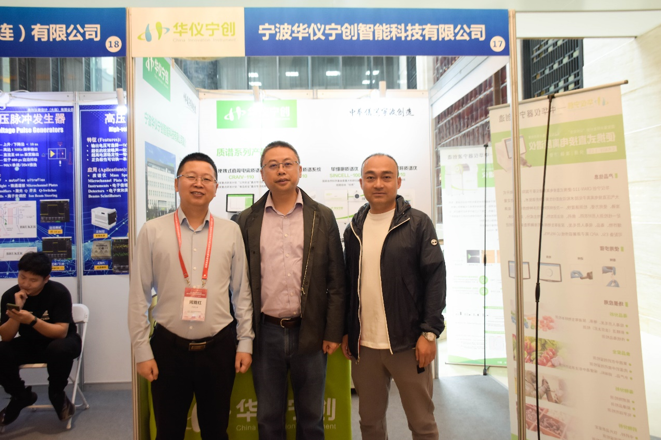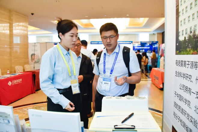 會議現場,華儀寧創展出了便攜式直接電離質譜儀CRAIV-110、單細胞質譜儀SinCell-100、介質阻擋放電質譜離子源DBDI-100、固相微萃取直接電離質譜離子源DBDI-200等多款原創質譜產品,吸引了眾多專家學者、院校師生、行業同仁前來參觀問詢,工作人員在現場為觀眾進行細致講解。