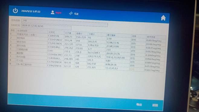 比武期間,我司小質譜協助破獲涉毒案件7個,抓捕嫌疑人9人。廣元地區共發現查獲吸毒人員3人,分別是依托咪酯1例、冰毒1例、海洛因1例,排除攜帶的可疑物質約10份;瀘州地區共發現查獲吸毒人員6人,均為冰毒陽性。