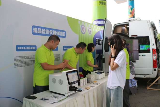 本次活動在央視頻、浙江公安視頻號、寧波公安視頻號三方平臺同步直播。華儀寧創在本次活動中設有毒品模型科普講解、禁毒知識有獎問答、毒品防控移動實驗室現場參觀、禁毒科學儀器設備實操體驗等環節。工作人員生動形象地將禁毒科技的發展情況呈現在現場群眾面前,幫助大家快速了解禁毒工作在科技引領下的創新發展,同時增強群眾對公安禁毒部門的信心,正確引導大家提高警惕,增強拒毒防毒意識。