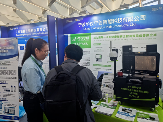 華儀寧創(chuàng)的直接電離質(zhì)譜儀是本次展會(huì)上的明星展品。其采用自主知識(shí)產(chǎn)權(quán)的介質(zhì)阻擋放電直接電離(DBDI)質(zhì)譜技術(shù),具備超高靈敏度,攻克傳統(tǒng)小型化質(zhì)譜技術(shù)領(lǐng)域難以實(shí)現(xiàn)的痕量物質(zhì)微弱質(zhì)譜信息的采集問題。該方案可以廣泛應(yīng)用于生物樣品基質(zhì)中痕量毒物毒品及代謝物的快速篩查和環(huán)境監(jiān)測(cè)領(lǐng)域?qū)ξ⒘课廴疚锏臋z測(cè)等領(lǐng)域。并且直接電離質(zhì)譜技術(shù)單個(gè)樣本檢測(cè)僅需數(shù)秒,可同時(shí)檢測(cè)多種目標(biāo)物,大大提高了篩查效率,滿足了現(xiàn)場(chǎng)實(shí)時(shí)精準(zhǔn)分析的市場(chǎng)需求。華儀寧創(chuàng)展臺(tái)的另一個(gè)亮點(diǎn):水樣自動(dòng)采樣器SAFS-110是華儀寧創(chuàng)基于原創(chuàng)專利技術(shù)(ZL2024105985747)研發(fā)推出的水樣自動(dòng)采樣器,該款設(shè)備可通過(guò)手機(jī)智能控制,實(shí)現(xiàn)小體積、高精度的水樣采集。采集過(guò)程支持設(shè)置多樣化采樣模式,且采樣器具備自動(dòng)潤(rùn)洗管路功能,有效防止樣本交叉污染。采樣器內(nèi)置可遠(yuǎn)程控制的冷藏存儲(chǔ)箱,能將水樣即采即凍,保證水樣采集過(guò)程中水質(zhì)不發(fā)生變化。目前,該款采樣器已在國(guó)內(nèi)多省市以及海外市場(chǎng)推廣銷售,取得了各領(lǐng)域?qū)I(yè)用戶認(rèn)可。