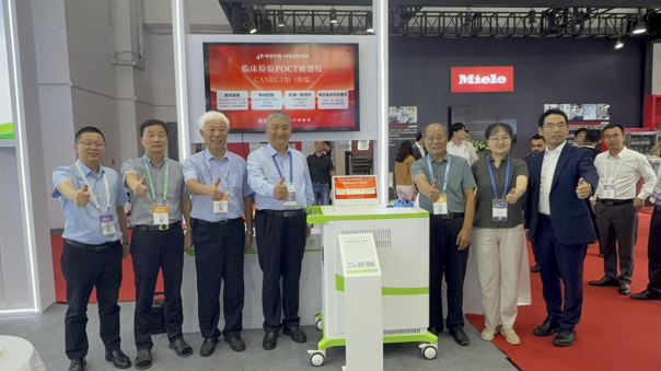 與會嘉賓與臨床檢驗POCT質(zhì)譜儀合影