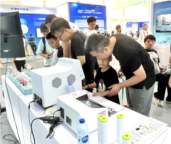 此次科普活動,華儀寧創展區以毛發毒品快速篩查質譜儀、便攜式毒品檢測一體機、手機APP驗毒、仿真毒品模型、禁毒科普宣傳視頻為主要展出形式,吸引了大量觀眾駐足圍觀?;顒蝇F場,眾多學生和家長對禁毒知識表現出濃厚興趣,許多家長會向工作人員咨詢禁毒相關知識及科學儀器的工作原理,并與自己的孩子進行討論學習。